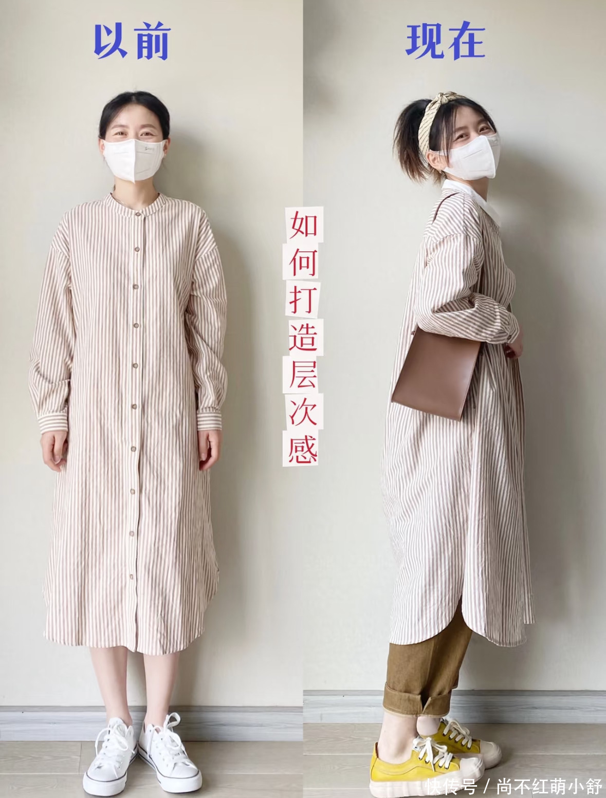 除此,日常常用的还有外搭叠穿法则,就是在衬衫裙外搭配一件马甲,便能轻松营造出简约而不失时尚的层次氛围感
