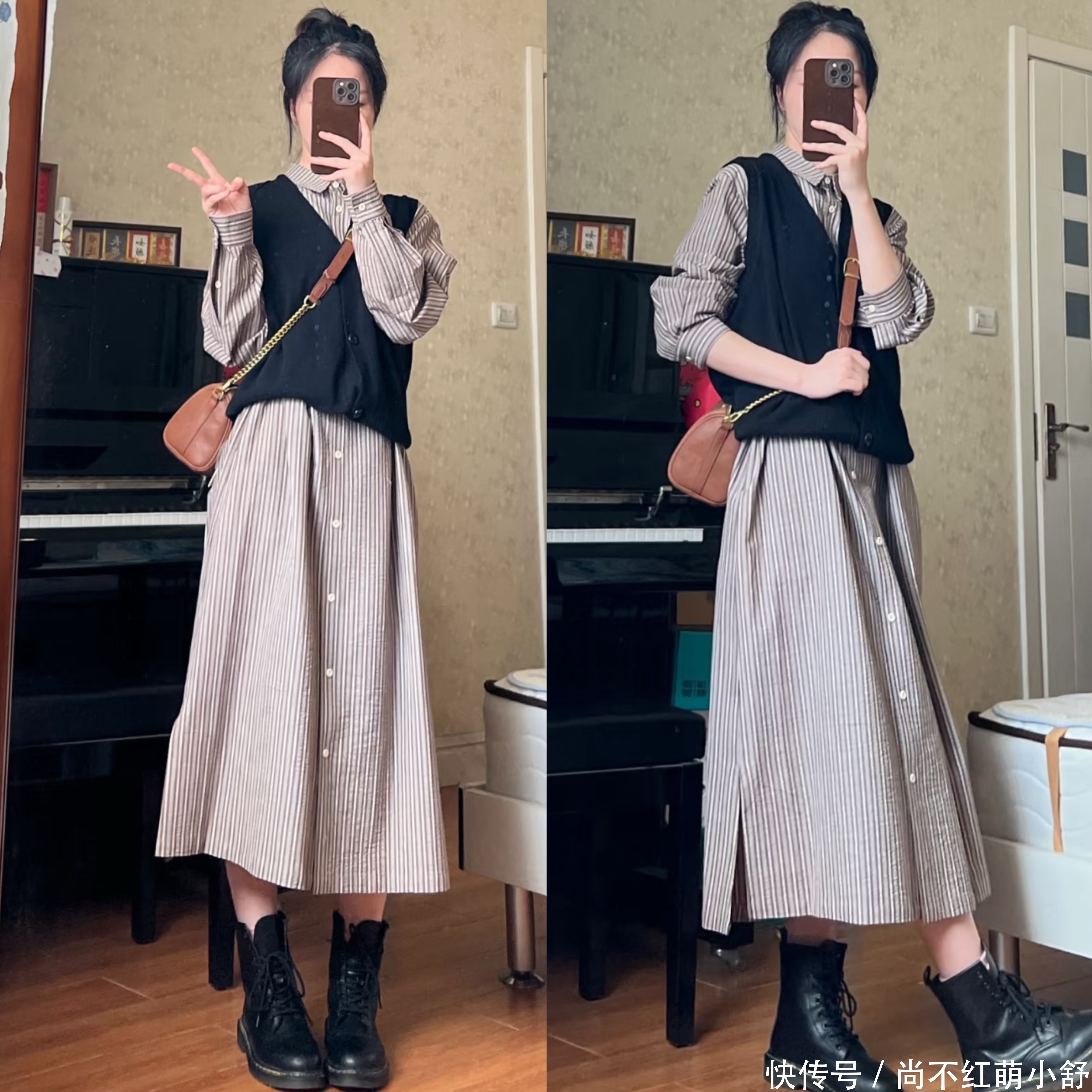 流行款式1:竖纹衬衫裙,显瘦天花板