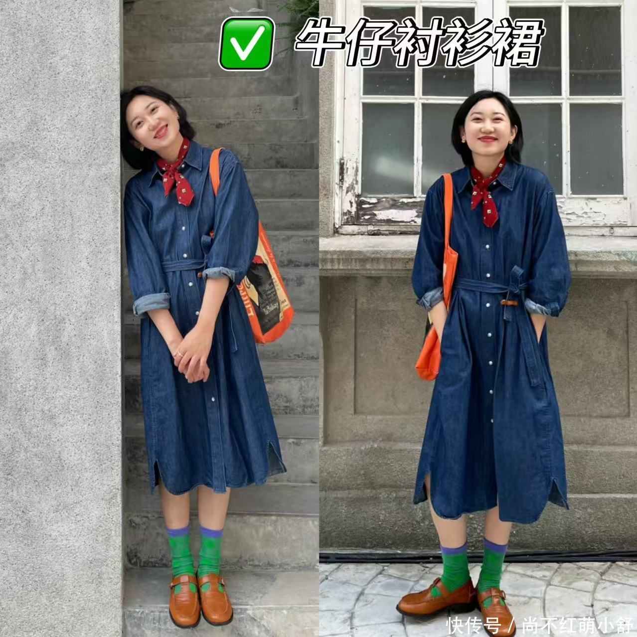 牛仔元素为衬衫裙增添了几分复古与经典,搭配复古的丝巾和鞋子,秒变港风女神。