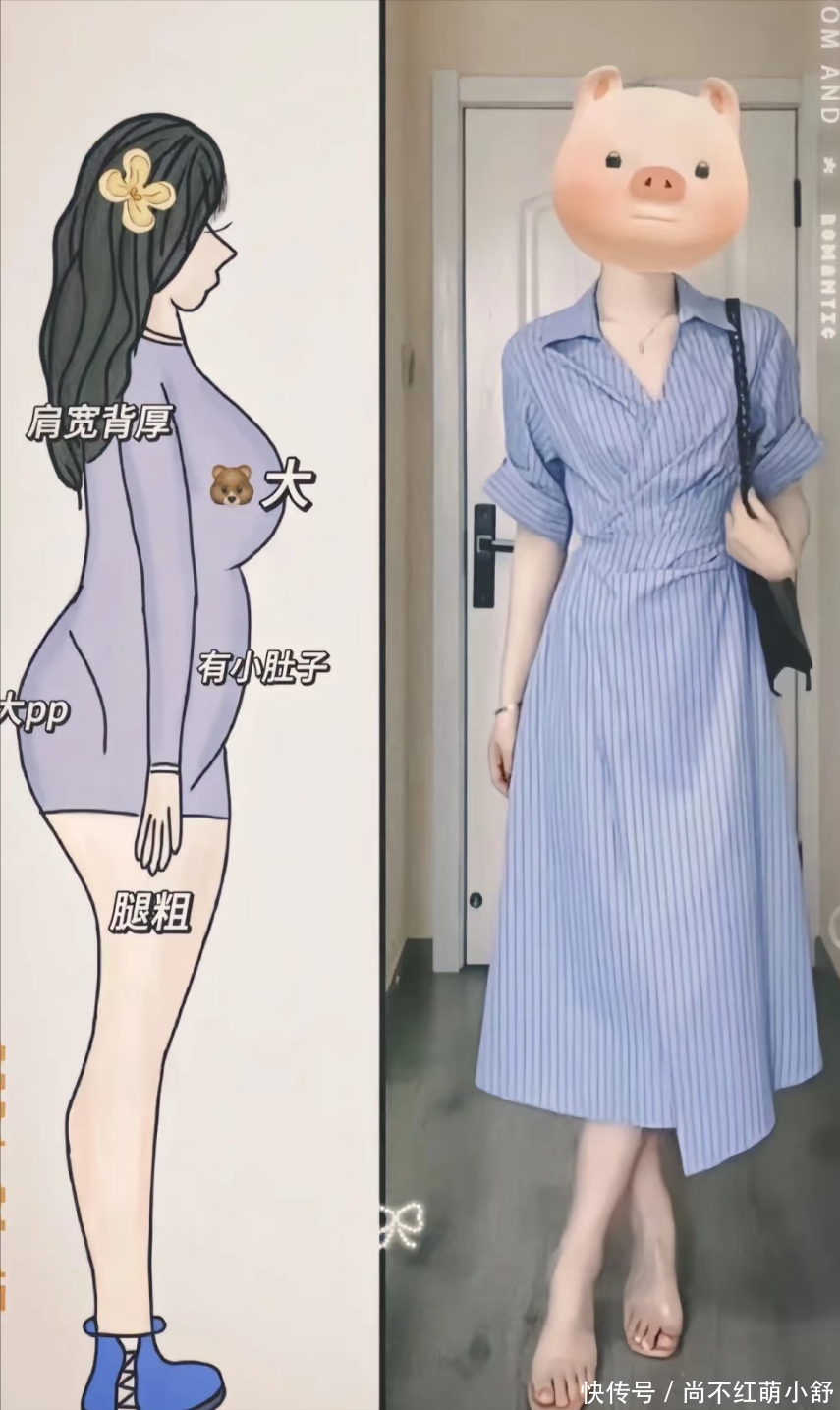 这样的衬衫裙基本不挑选身材,而且立体剪裁的拼接领口和腰带设计自带PS特效,巧妙藏起小肚腩和假胯宽。